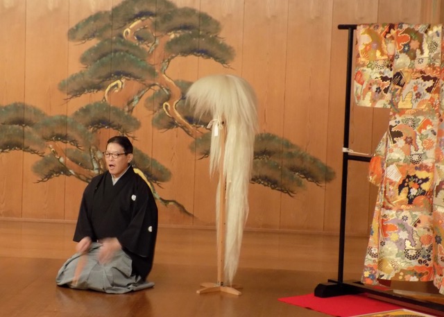 休憩後、若手弟子の石井寛人氏の「屋島」、ご子息中森健之介氏の「羽衣」、そして仕手中森貫太先生による「猩々」という能の名曲3番の重厚な仕舞は、各席からの拍手が鳴りやまない大成功のチェレンジとなった。