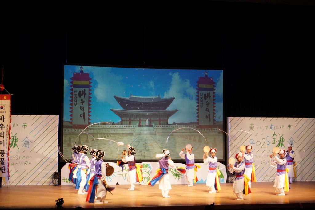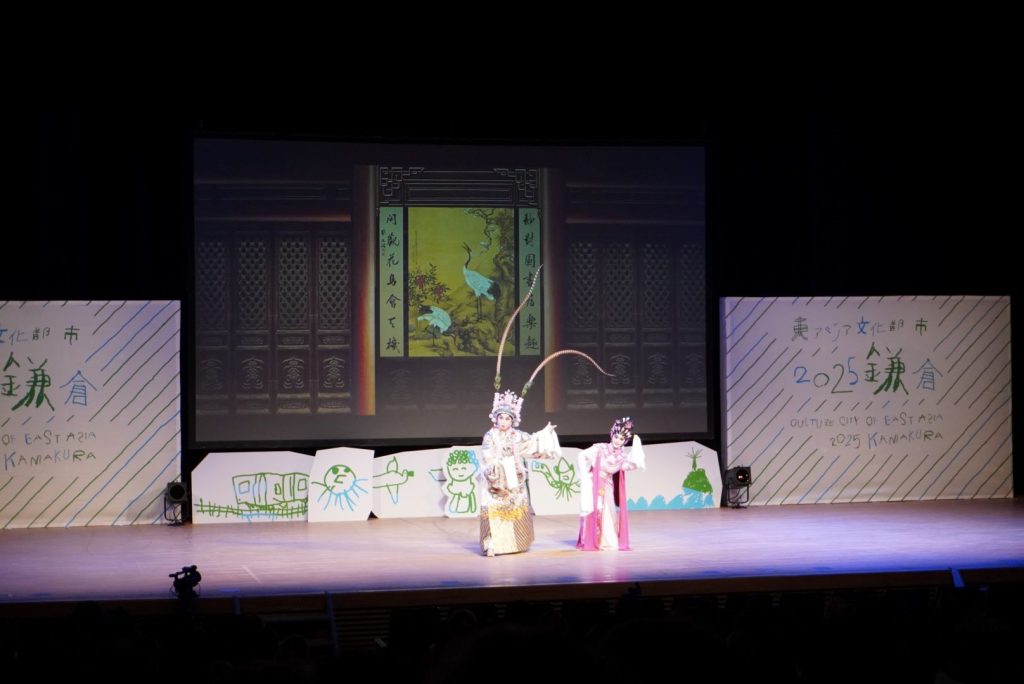 日・中・韓の人々が文化交流を通じて相互理解を深めるという目的で、本年度は鎌倉が日本の代表として選ばれました。そして5月20日鎌倉芸術館に於て開幕式典が挙行されました。中国からはマカオ特別行政区と湖州市、韓国からは安城市からそれぞれの都市の誇りである芸能が披露されました。式典は鎌倉の鳶組合の木やりから始まり、松尾崇市長の挨拶、都倉俊一文化庁長官のビデオメッセージ、各都市の挨拶、そして各都市の芸術交流祭と続きました。マカオは広東オペラ。京劇のように甲高い声の男女主役のやり取りは中々見られないもの。湖州市は養蚕の繭の有数の生産地とかで女性たちの舞いは優雅そのもので観客を魅了しました。安城市からは韓国伝統楽器を打ち鳴らしながらの勇壮な男性たちの踊りでした。最後は日本代表し、ご存知鎌倉の「静の舞」。中・韓の踊りが「動」とすれば、静の舞は「静」でしょう。「静」の中にも義経を愛し、最後は京に追いやられる白拍子の悲しみが良く表現されていました。各国の伝統芸能が披露されたあとは、特別講演としてオペラ歌手森麻季さんによるステージ、聞き慣れたオペラやクラシックの音楽で式典は最高潮になり、成功裡に終わりました。世界中からたくさんの観光客が鎌倉に来られますが、伝統芸能と文化交流という切り口から隣国の皆さんと交流できることは、また一味違った鎌倉からの発信になったと思います。
