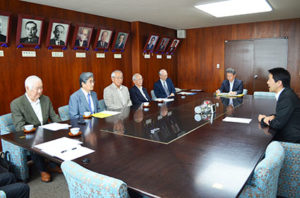 第9代目 みらいふる鎌倉大村貞雄会長市長に新会長として挨拶に訪れ、みらいふる鎌倉・平成30年度活動に対して協力をお願いした。 活動方針楽しくなければ 老人クラブではない。仲間と集い、人生を楽しもう。新しい感覚に応える高齢