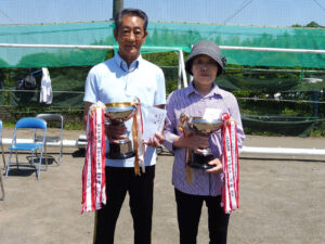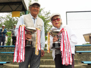 令和元年5月23日(木)グラウンドゴルフ日和。参加者154名。開会宣言のあと、試合前の準備運動がありいよいよ試合開始。2ゲームトータルで順位が決定された。男子優勝者 戸谷 秀己さん(所属:植木第一紅葉会) スコアー37打