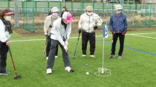 昨年10月に深沢地区に開設した「みんなの鳩サブレースタジアム」で人工芝を利用した初のグラウンドゴルフが参加者60名で開催された。メンバーの方々は人工芝の読みが難しいようで最初は苦戦していましたが、2時間楽しく過ごしました